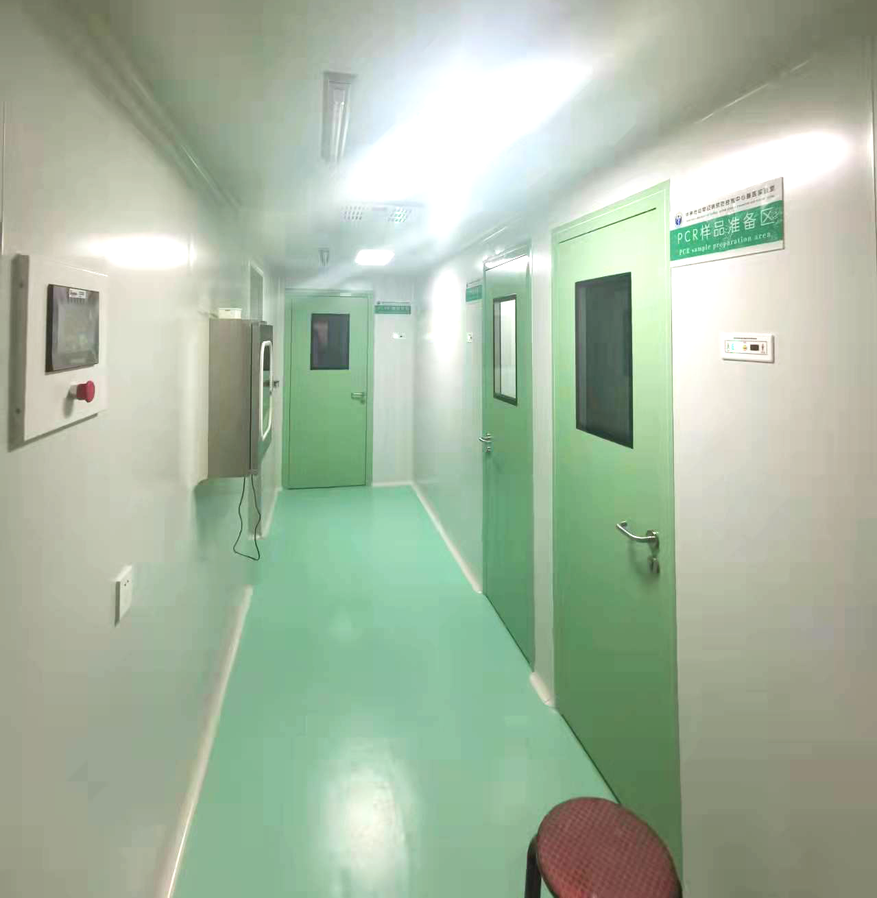 我公司嚴(yán)格按照《潔凈施工和驗(yàn)收規(guī)范GB50591-2010》、《醫(yī)療機(jī)構(gòu)臨床基因擴(kuò)增管理辦法》、《通風(fēng)與空調(diào)工程施工及驗(yàn)收規(guī)范》(GB50243-2002)及相關(guān)建筑規(guī)范的建設(shè)標(biāo)準(zhǔn)和要求對(duì)實(shí)驗(yàn)室進(jìn)行系統(tǒng)的設(shè)計(jì)和施工,下圖為完工后的現(xiàn)場實(shí)拍圖。
