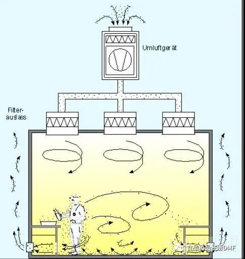 一個(gè)設(shè)計(jì)良好的空氣處理系統(tǒng)應(yīng)該將新鮮的和再循環(huán)的過(guò)濾后的潔凈空氣一起輸送到潔凈室中,在一起把顆粒從潔凈室?guī)ё?。根?jù)操作對(duì)象的不同,從室內(nèi)取出的空氣通常通過(guò)空氣處理系統(tǒng)再循環(huán),在空氣處理系統(tǒng)中過(guò)濾器去除微粒。如果工藝、原料或產(chǎn)品的含有大量水分,有害蒸汽或氣體就不能再循環(huán)回至室內(nèi)了,這種空氣通常被排出到大氣中,然后100%的新鮮空氣被吸到潔凈室系統(tǒng)中,處理后到潔凈室內(nèi)。
