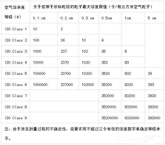 空氣潔凈度劃分為九個(gè)等級(jí),如表1-1所示。
