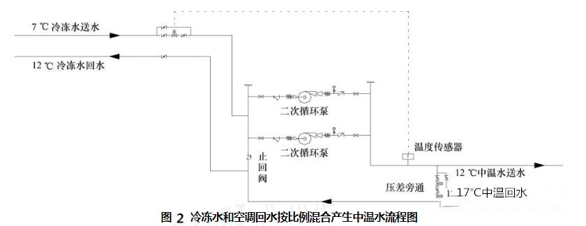 3 冷凍水和空調(diào)回水按比例混合產(chǎn)生中溫水的方法